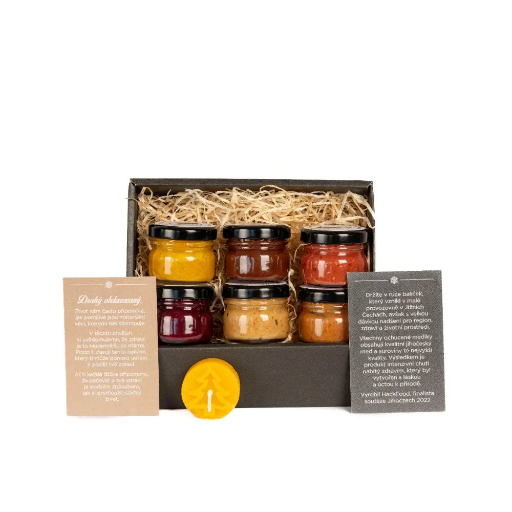 V krabičce navíc najdete malou svíčku ze včelího vosku a kartičku s poděkováním – pro osobní dotek.